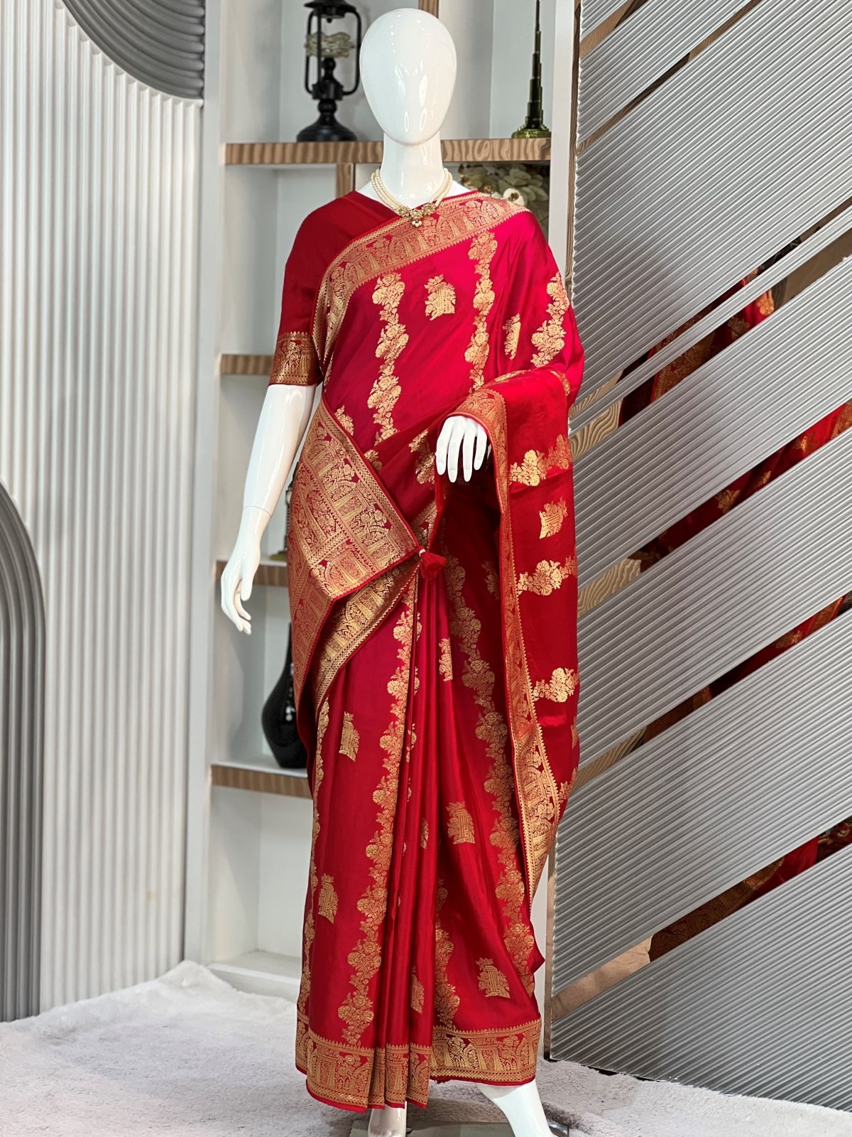 Make a statement with the bold elegance of our Inspired Gadwal Half Silk Saree in Red. Crafted from premium half-silk fabric, this saree delivers the...
