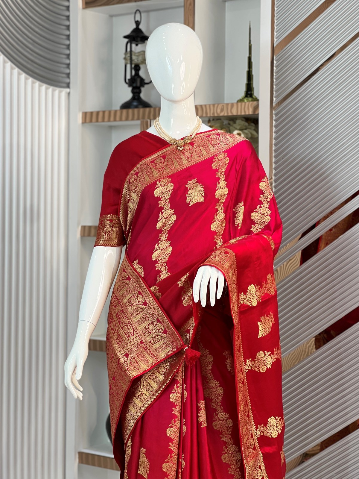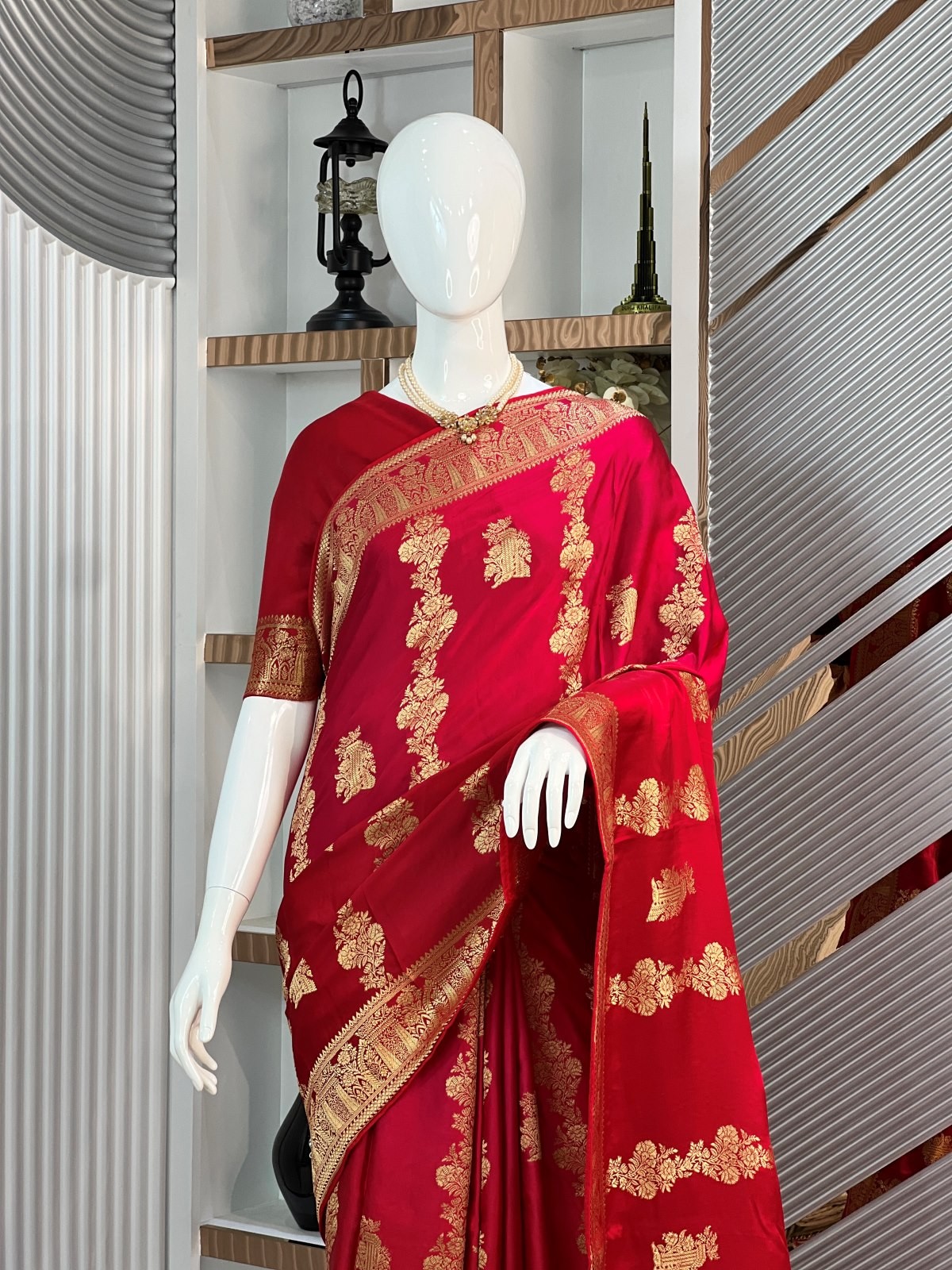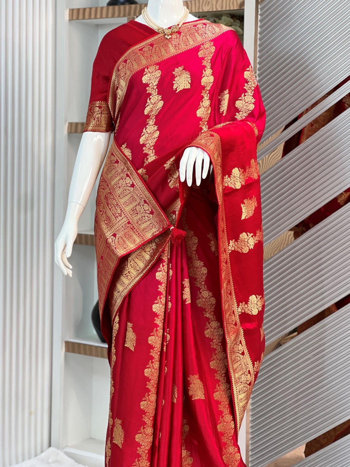 Embrace elegance with our Khaddi Saree in Viscose Silk, Red & Magenta Combination. Crafted from soft and lustrous viscose silk, this saree offers a graceful drape and a vibrant dual-tone look. Perfect for festivals, traditional events, and elegant daily wear, it comes with a matching blouse piece and is best maintained with dry cleaning. Pair it with your favorite jewelry to complete the timeless look.