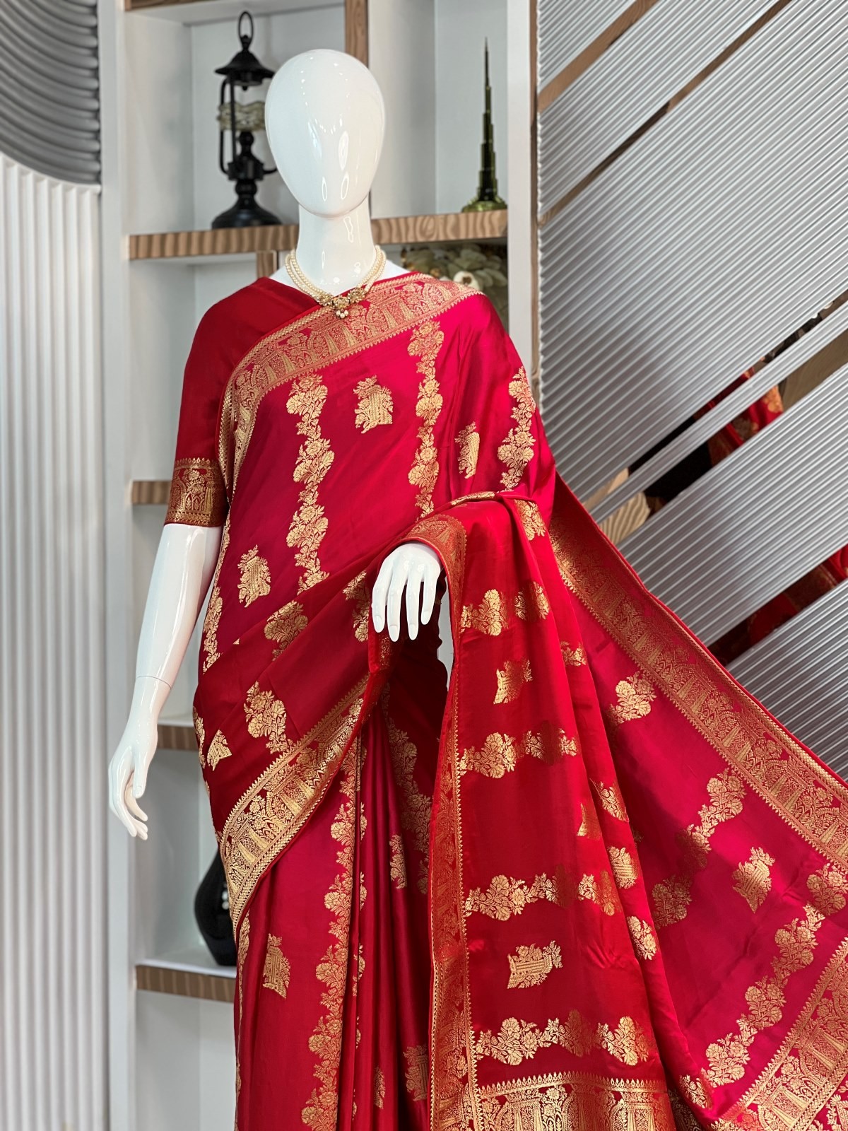 Turn heads with the bold elegance of our Inspired Gadwal Half Silk Saree in Jam Color. This saree is crafted for women who love to blend timeless trad...