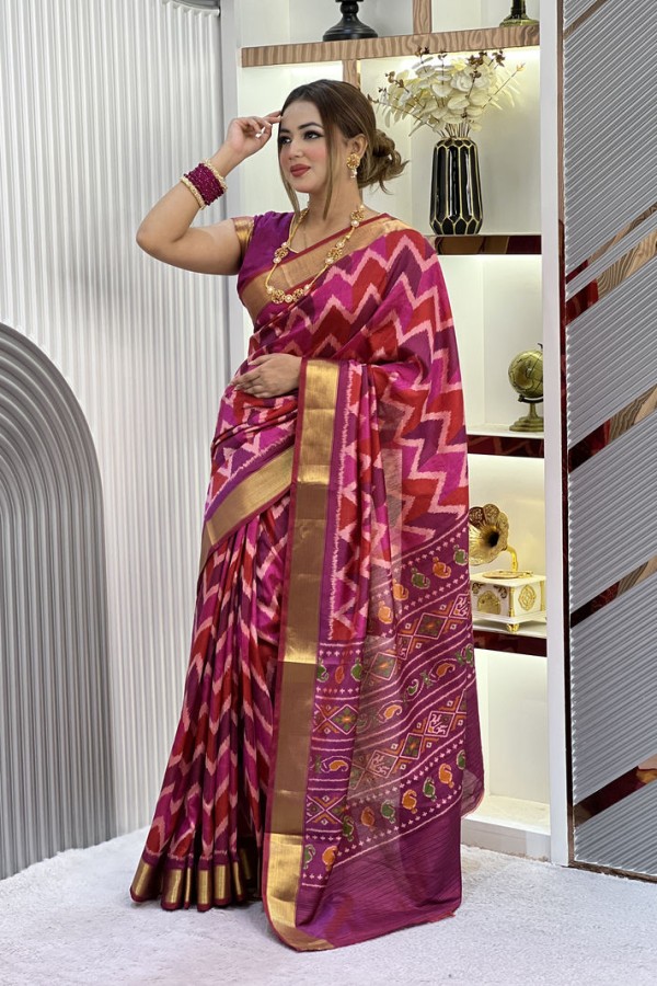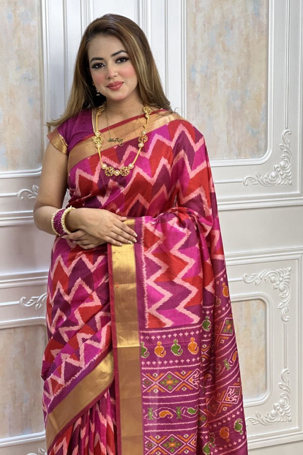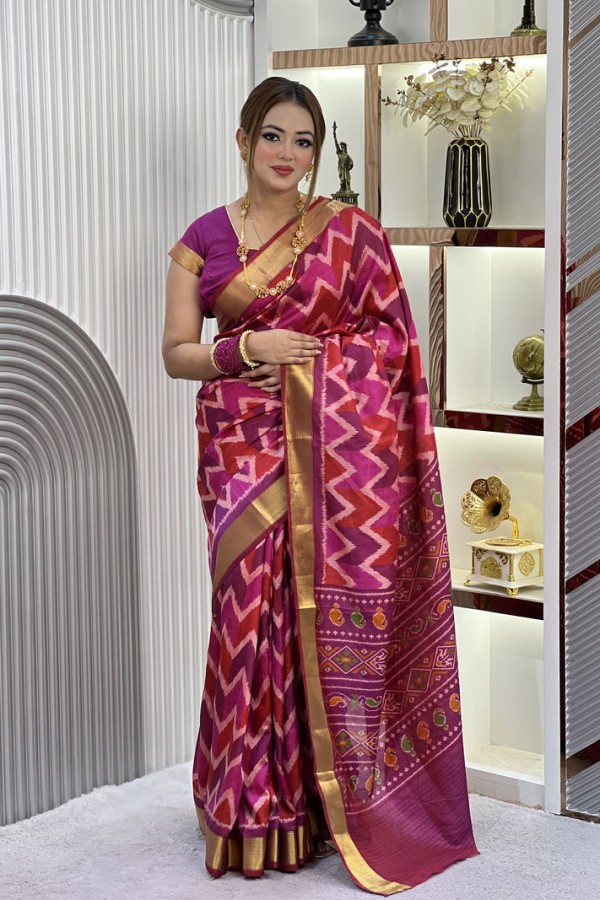 Crafted from fine silk, this Patola saree features intricate weaves and a graceful drape that blends tradition with elegance. Perfect for weddings, festive occasions, or cultural events, it offers a rich and timeless appeal.