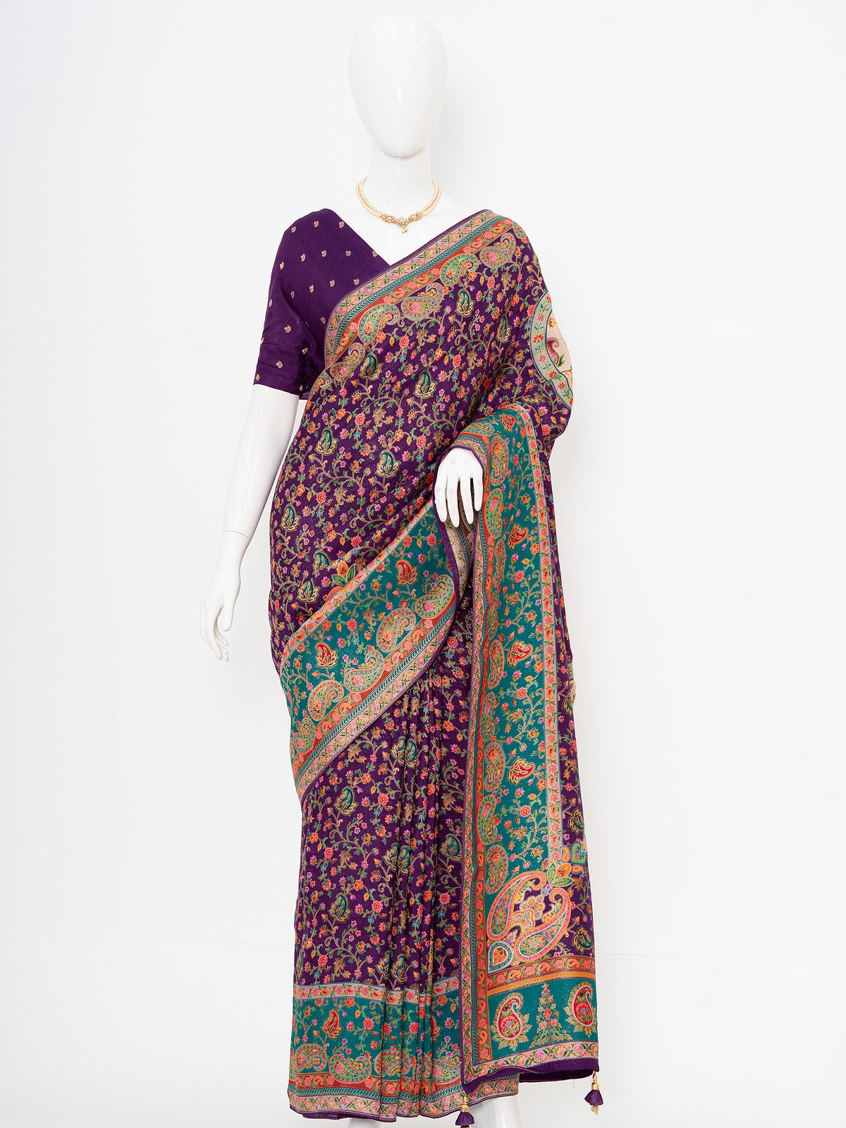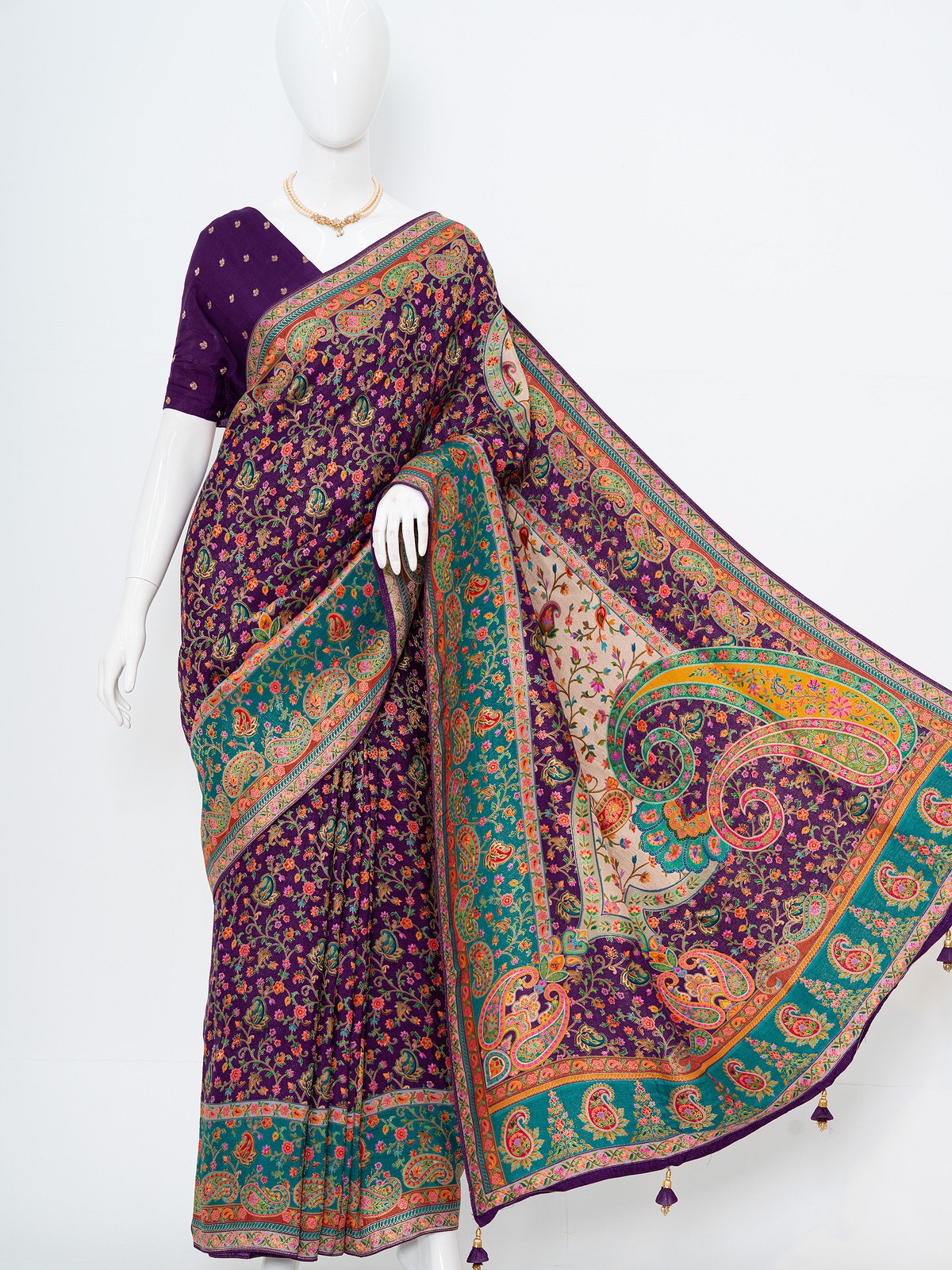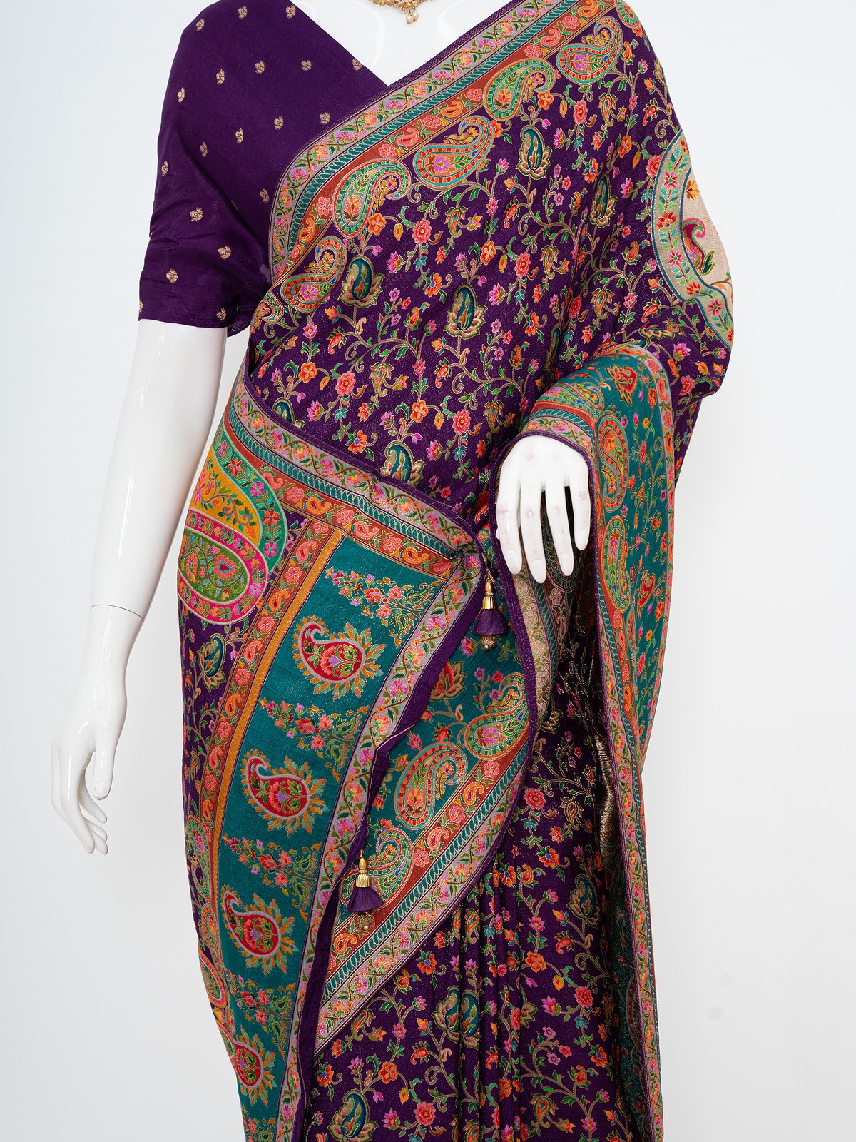 Dark Purple Viscose Silk Kashmiri Kani Saree