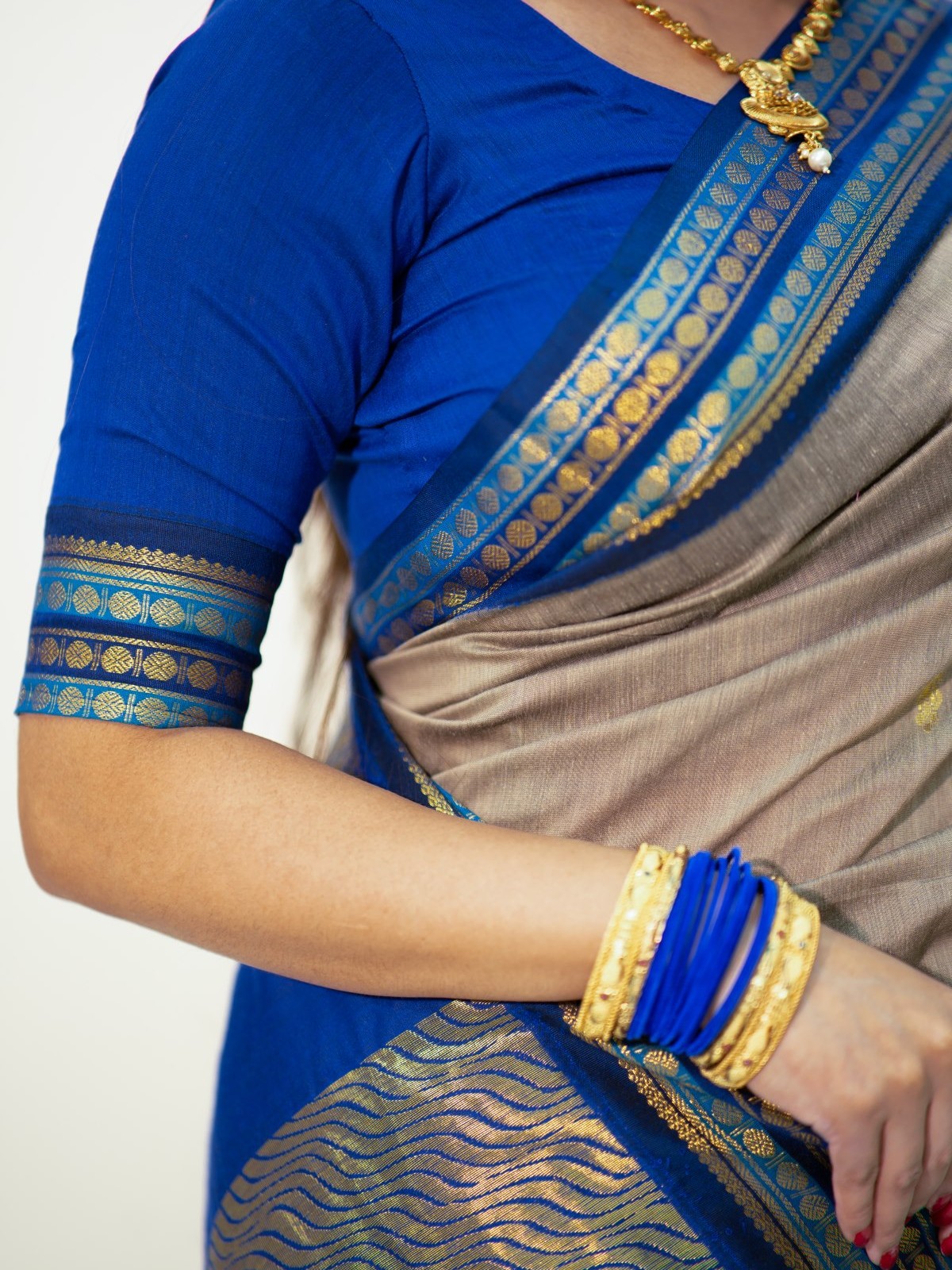 Expertly woven with a unique blend of silk and cotton, this saree offers both the shine of silk and the comfort of cotton. Its graceful drape and lightweight feel make it perfect for festive gatherings, cultural events, or elegant daywear.