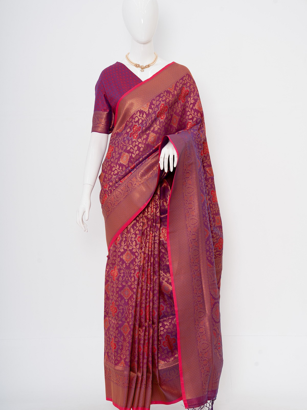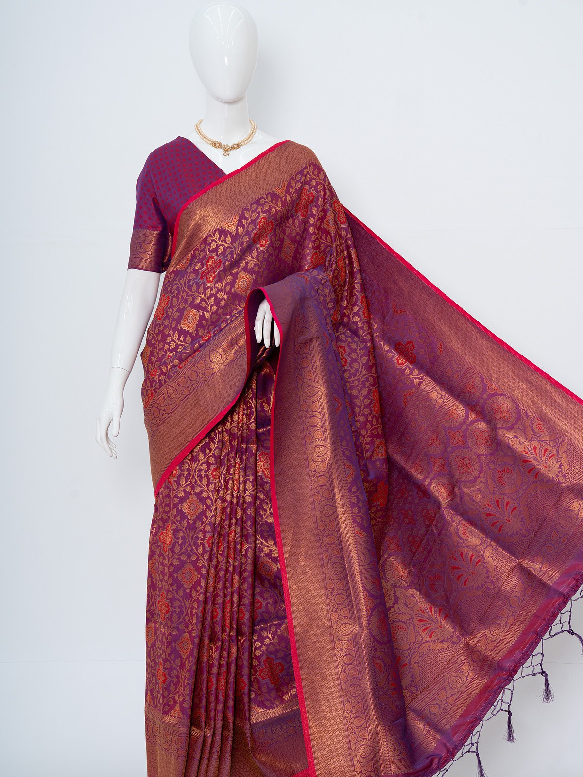 Jam Colour Soft Silk Kanchipuram Saree