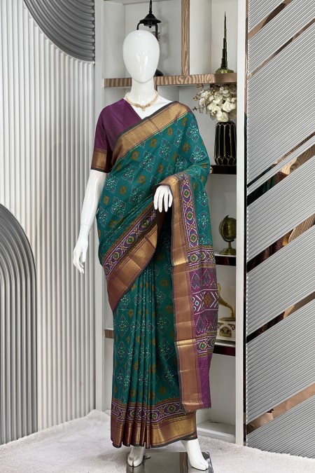 Elevate your wardrobe with our Patola Saree, crafted from premium Raw Silk, designed to bring out your graceful charm with every drape. The rich...