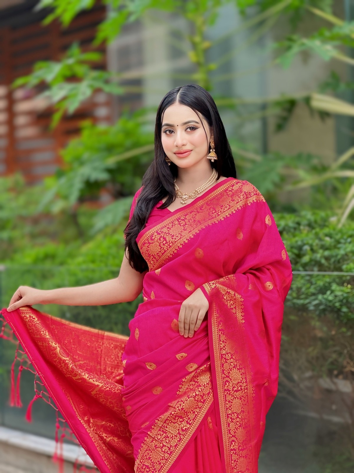 Crafted from premium, soft silk, this saree boasts a luxurious texture and a graceful flow. Ideal for weddings, cultural functions, or traditional gatherings, it offers timeless beauty and a statement of refined taste.