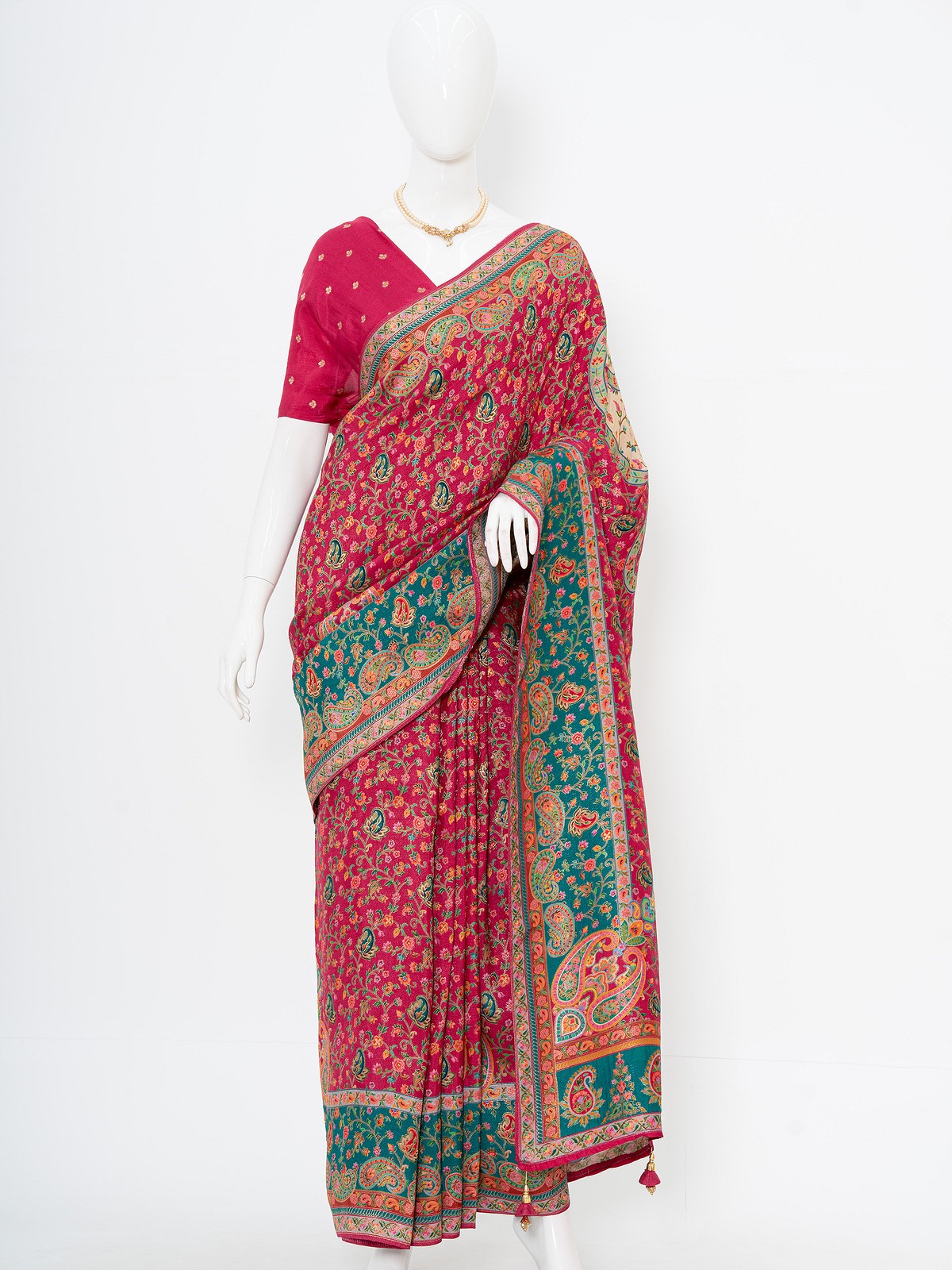 Magenta Viscose Silk Kashmiri Kani Saree