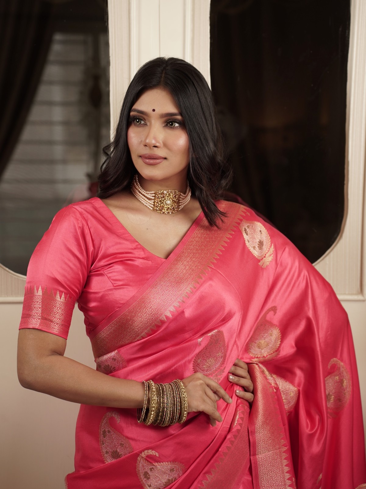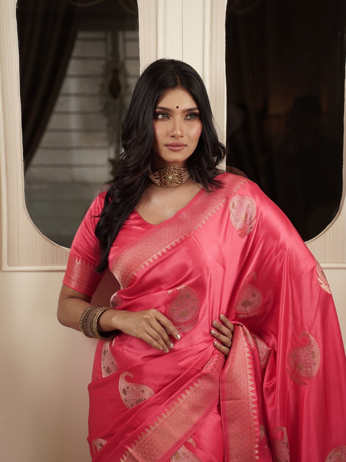 Buy this stunning Onion Premium Soft Silk Kanchipuram Saree online in Bangladesh at Dhaka Mart. This premium Kanchipuram saree offers a rich tradition...