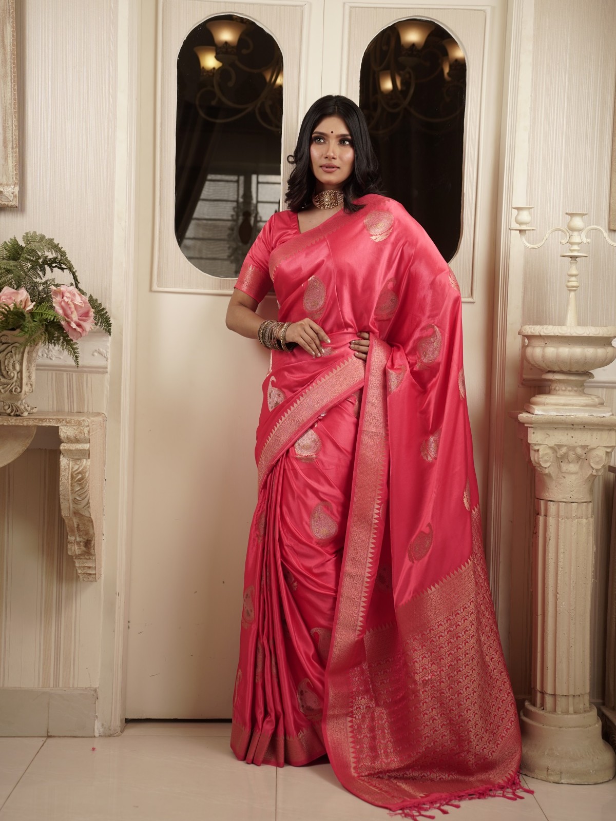 Buy this stunning Magenta Premium Soft Silk Kanchipuram Saree online in Bangladesh at Dhaka Mart. This premium Kanchipuram saree offers a rich tradi...