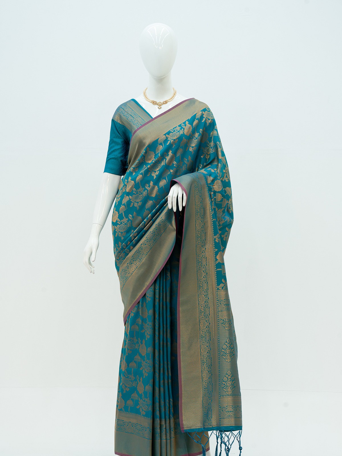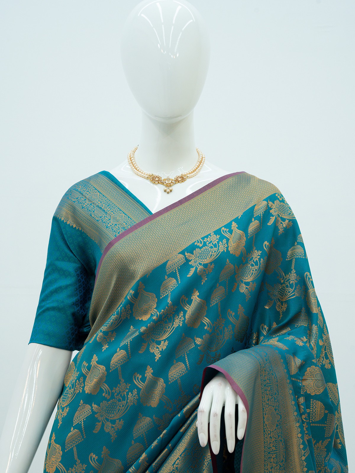 This exquisite Firoza Viscose Silk Kashmiri Kani Saree, now available at Dhaka Mart, is a true masterpiece of artisanal brilliance. Woven from premium...