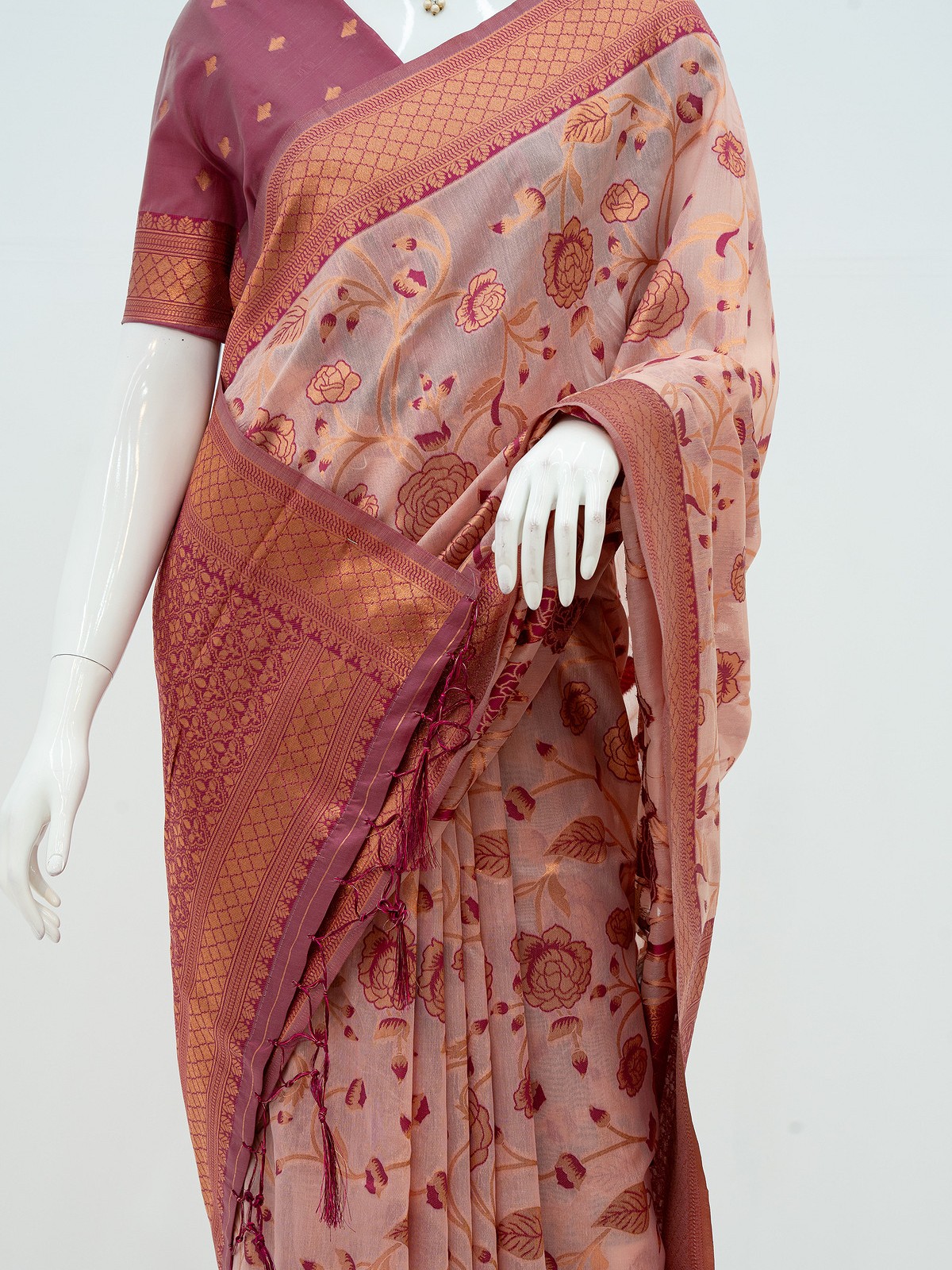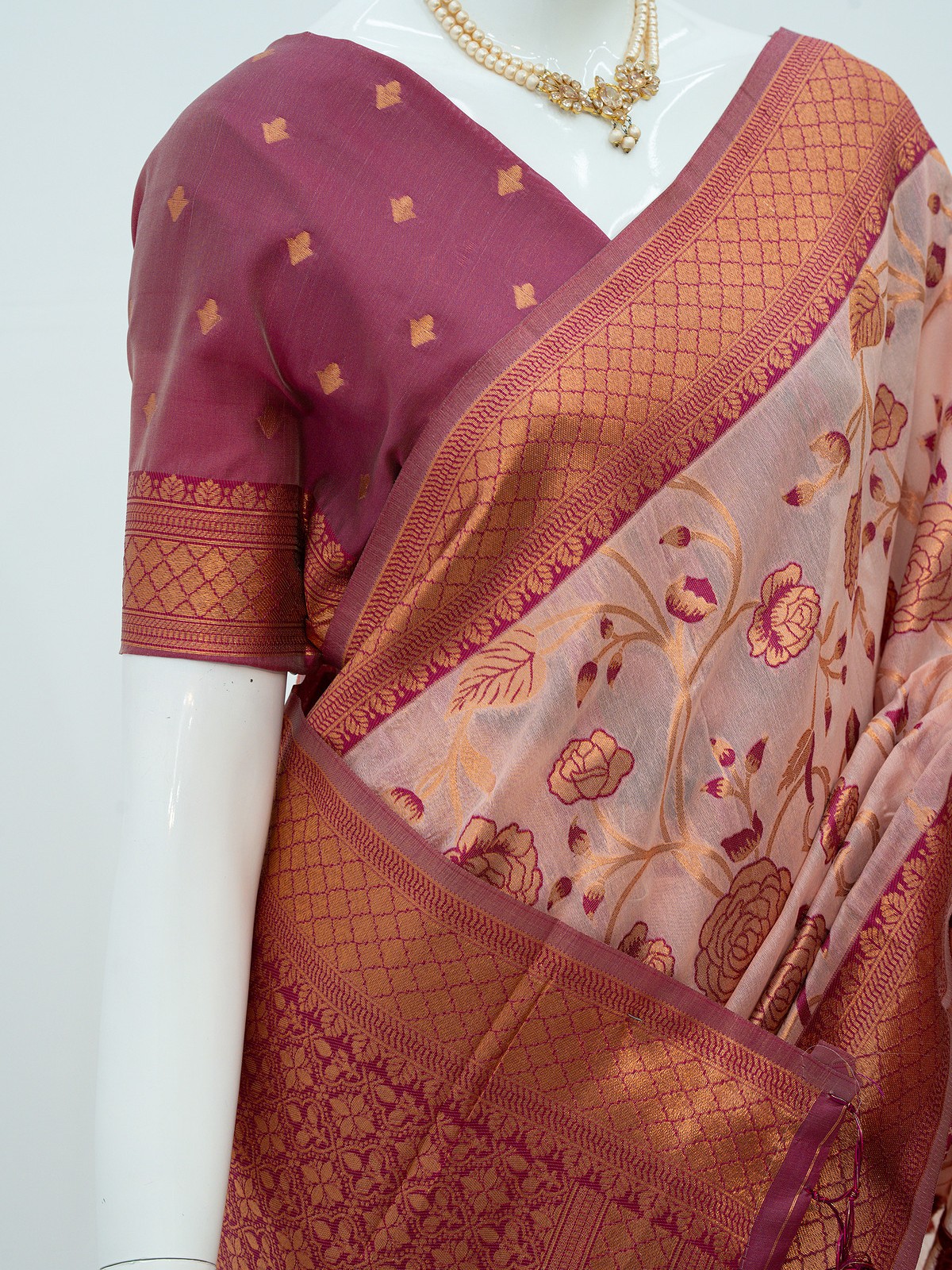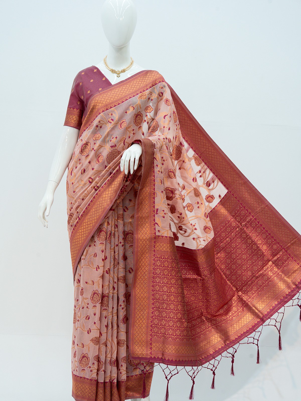 Peachy Pink Tussar Silk Kanchipuram Saree