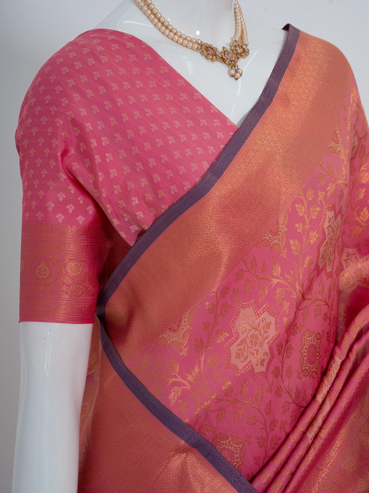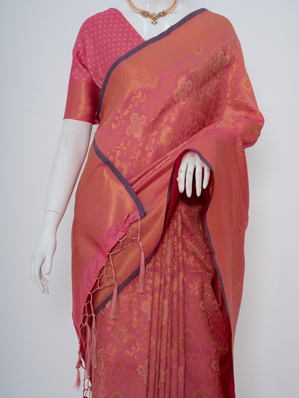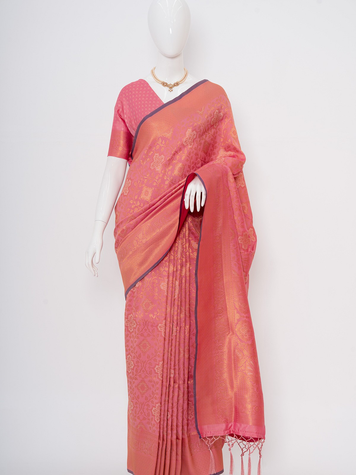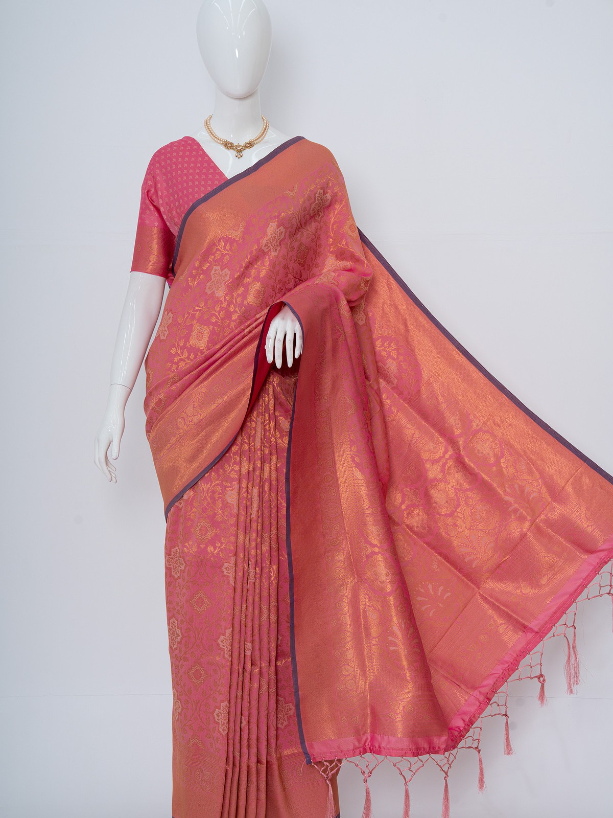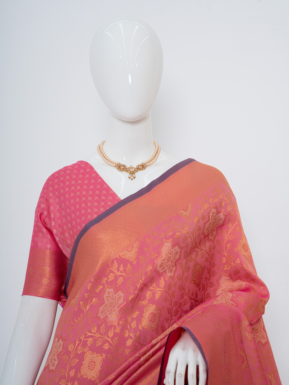 Shop this stunning Pink Soft Silk Kanchipuram Saree online in Bangladesh, exclusively at Dhaka Mart. Crafted from authentic Kanchipuram silk, this bestselling saree offers a luxuriously smooth drape and a timeless traditional look that turns heads at every wedding and festive occasion. The deep pink hue radiates elegance under any light. Comes with a matching unstitched blouse piece. Style it your way. Limited stock available. Order now and enjoy hassle-free delivery across Bangladesh.