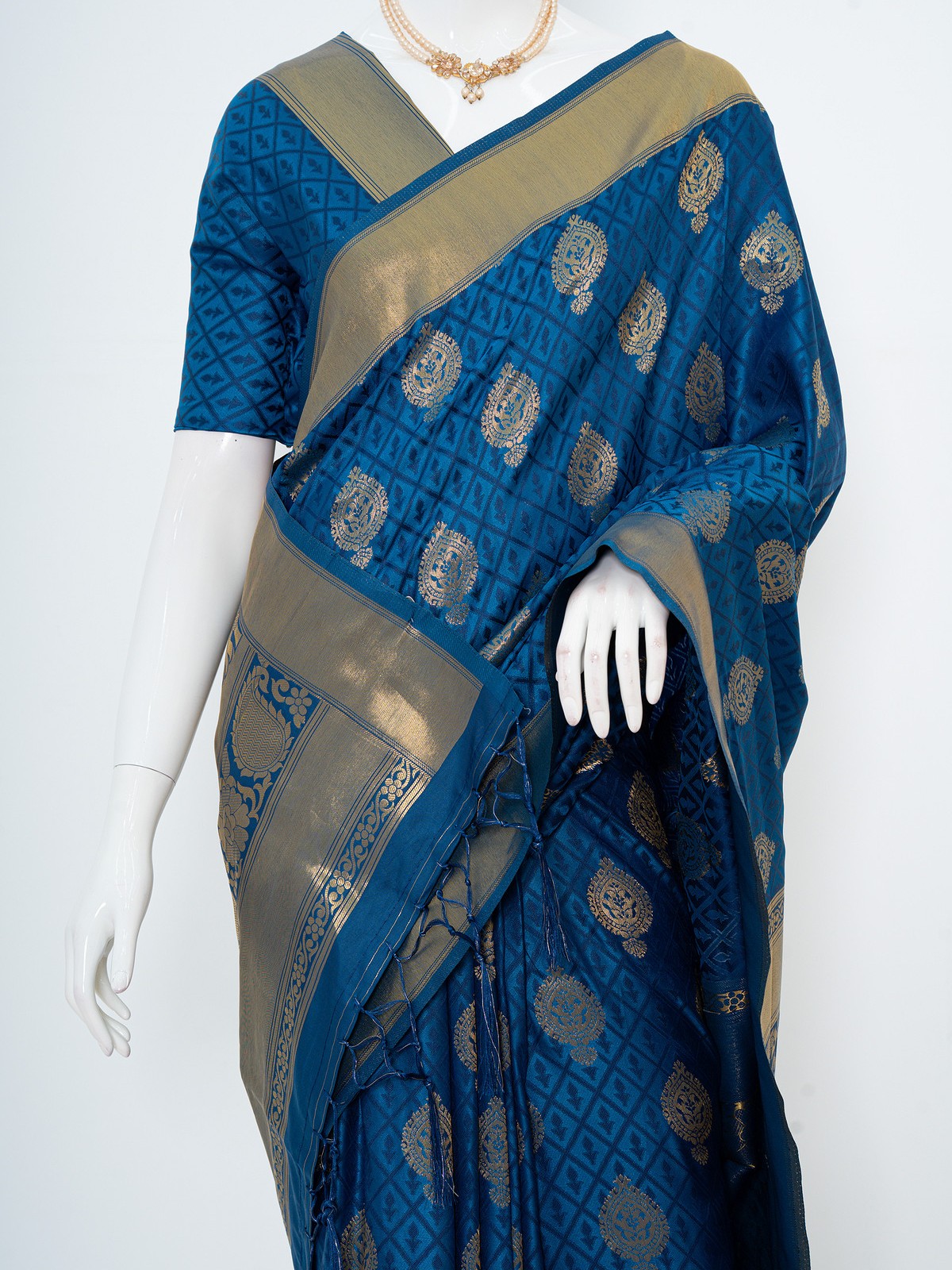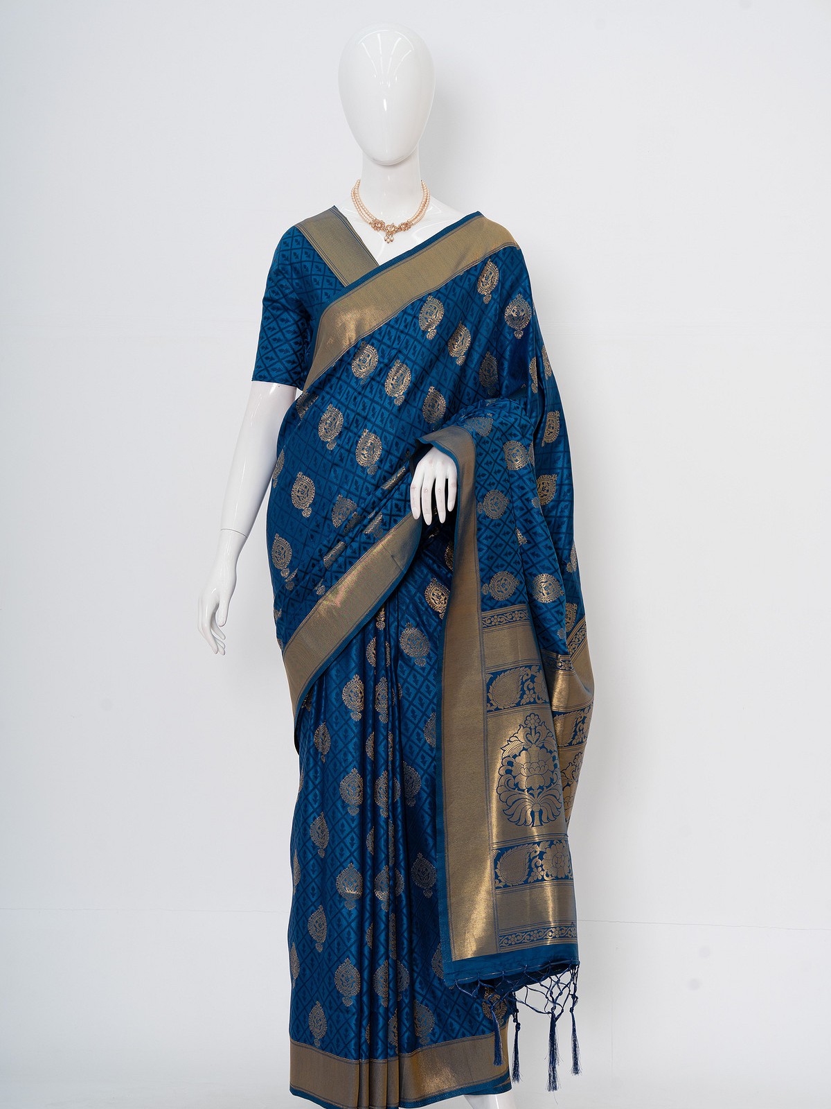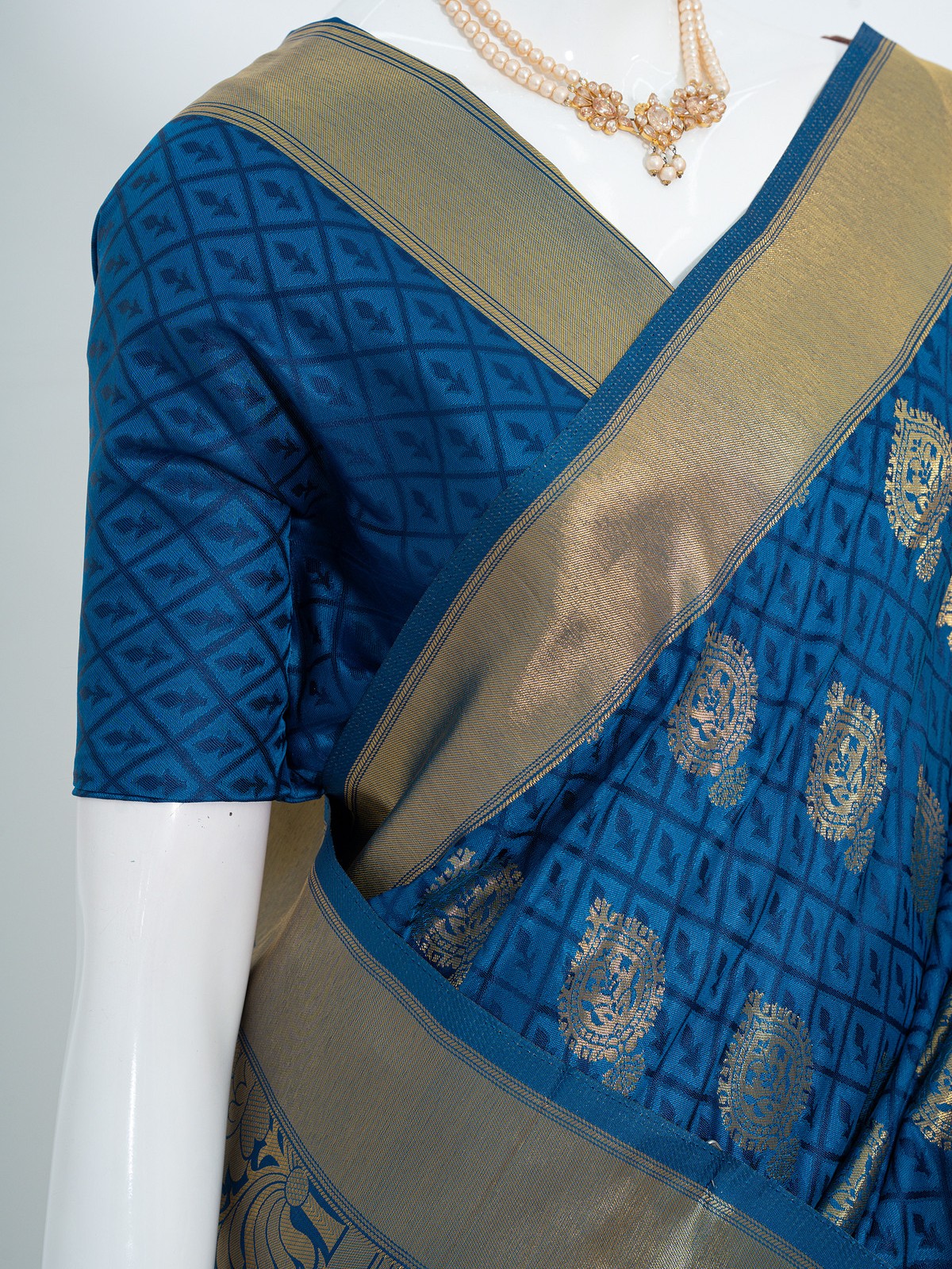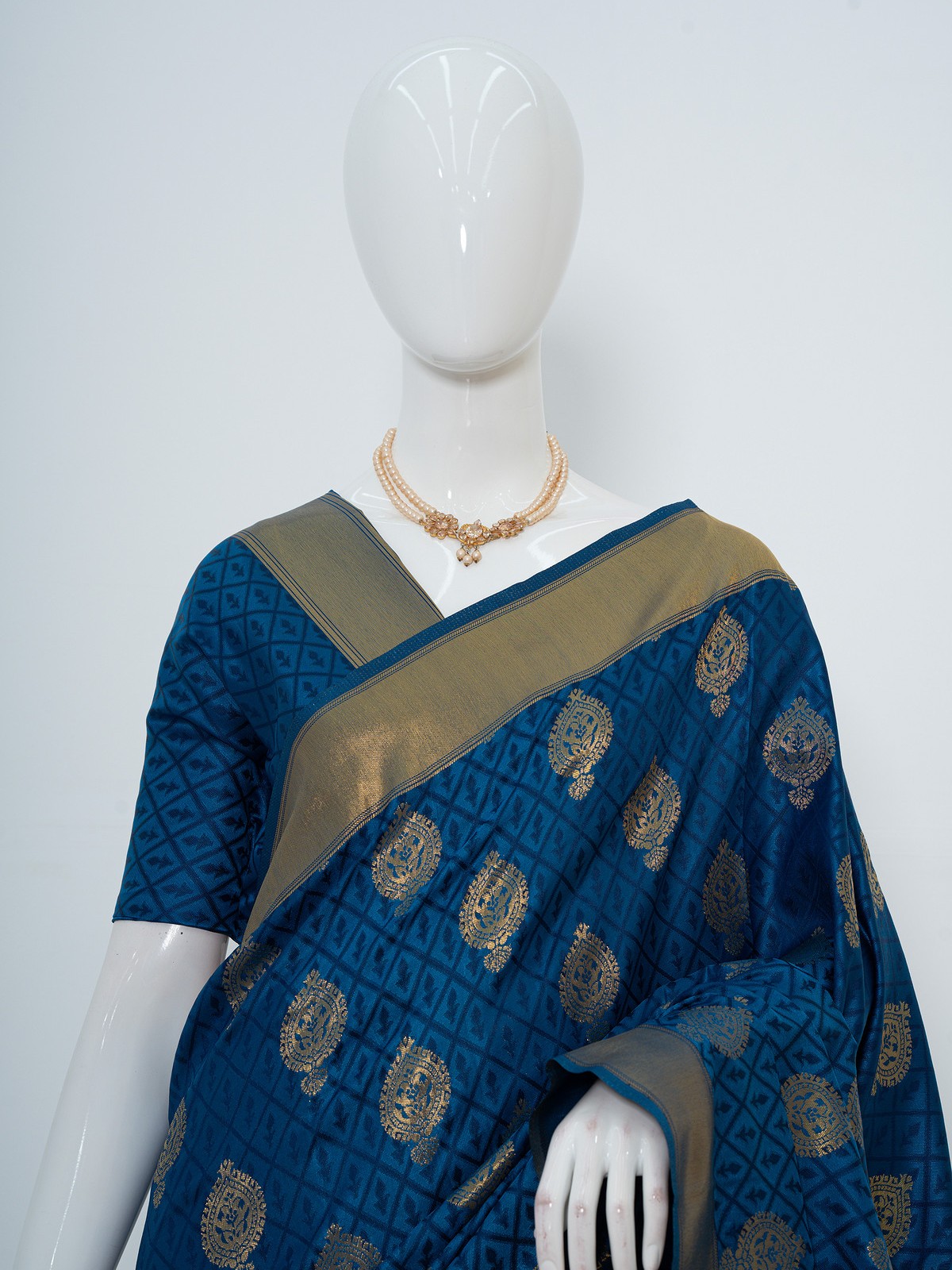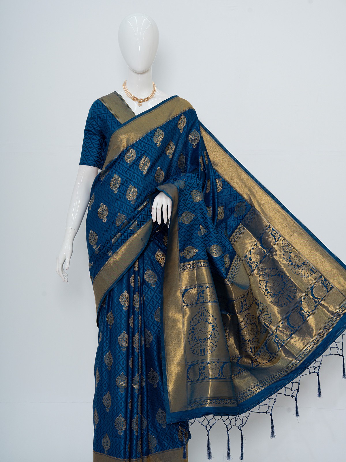 Shop this stunning Royal Blue Soft Silk Kanchipuram Saree online in Bangladesh, exclusively at Dhaka Mart. Crafted from authentic Kanchipuram silk, this bestselling saree offers a luxuriously smooth drape and a timeless traditional look that turns heads at every wedding and festive occasion. The blue hue radiates elegance under any light. Comes with a matching unstitched blouse piece. Style it your way. Limited stock available. Order now and enjoy hassle-free delivery across Bangladesh.